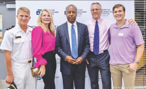 A Cornerstone Family: Shown are Midshipman Dylan Simon, Sharon Simon, Dr. Richard Simon, and Hunter Simon with Dr. Ben Carson (center) at the recent event held at Seaford High School.
