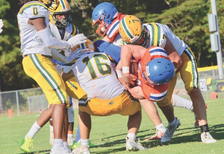 Delmar’s offense had five rushing touchdowns to go along with a pair of defensive scores and one on special teams. Schoolfield credited his offensive line for the team’s success on the offensive side of the ball.