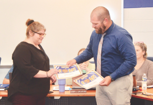 R.O.A.R. Employee of the Month- Danielle Youngblood was presented with award by Delmar Middle School Principal Kevin Moreland and Delmar High School Principal Matt Marine (not pictured) during September Delmar School Board meeting