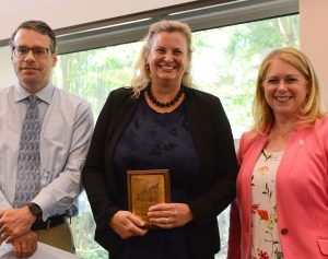 Pictured, from left, are Dr. Randall Groth, chair of the SU Faculty Awards and Recognition Committee; Walton; and SU President Carolyn Ringer Lepre.