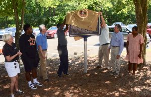The Jason Beach historic marker is unveiled during Monday’s ceremony at Trap Pond. Photo by Mike McClure