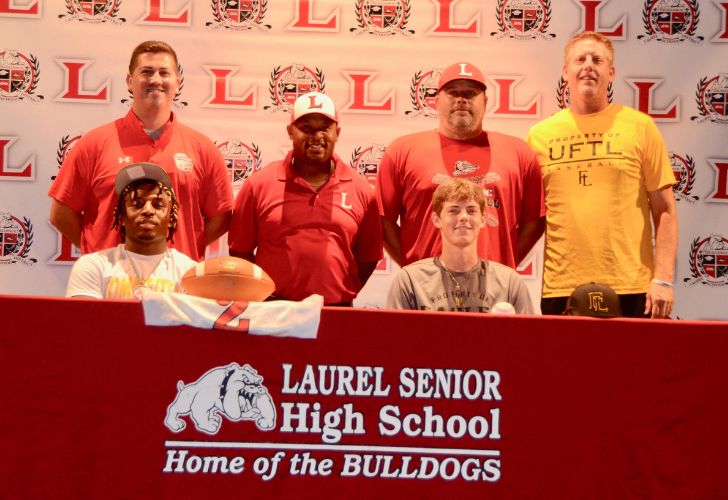 Recent Laurel graduates Kylse Wilson and Brady Lee held their college signings last Thursday at Laurel High School. Lee will play baseball and attend the University of Fort Lauderdale while Wilson will play football and study at Delaware Valley University.