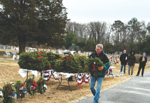 David Rose takes a wreath to be placed on a veteran’s grave in Blades in a nationwide event, Wreaths Across America. Photo courtesy of Blades Wreaths Across America Committee