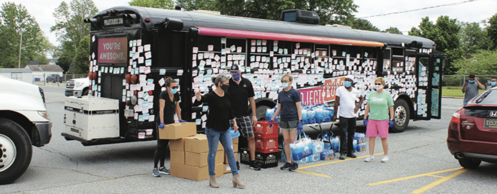 Alyssa Titus, Marketing Director for Schell Bros., oversees the Project Kudos bus. “We want to make sure families in the communities we visit get food they need in this time of crisis. We have visited many communities and hand out the food boxes. Today we will be giving out over 250 boxes,” she said.