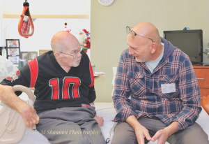 Sayin and Hollis shared some memories during their recent visit. Hollis coached for 30 years and was a part of the annual Blue-Gold football game. He was a part of 65 championships in his 30 years of coaching football, track, and youth swimming. Hollis said one Blue-Gold player from another team asked him what happens in Seaford’s pit because the team would warm up, go to the pit, and then come out to the field fired up.