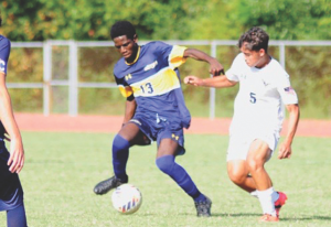 Seaford goalkeeper Luke Metzner stopped an attack by DMA. On the punt, Metzner dropped it perfectly to the strikers who shared the attack but the drive was stopped by DMA. Seaford and DMA exchanged possessions and battled at midfield. Both teams were awarded direct kicks on plays and Seaford’s Cherldens Bordeau attempted a take away from behind on a DMA forward. The play put both players on the ground and a yellow card to Bordeau, his second of the season.