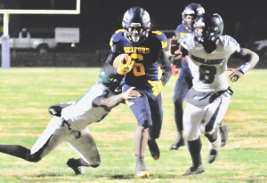 From the 49 yard-line, Evans moved the markers to the 36, Zahir Seymore advanced the ball to the 16, and West to the two yard-line. The touchdown was scored by Je’Viohn Hurst and with an extra point by Metzner the Blue Jays led, 14-0.