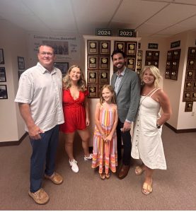 Derrik Gibson stands in the Eastern Shore Hall of Fame after his induction in a ceremony held at Arthur W. Perdue Stadium in Salisbury. Gibson is shown with his father Ben Parker, sister Madison, daughter Genevieve, and mother Sharon Parker. Submitted photo