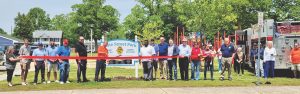 RIBBON CUTTING- Members of the Delmar Council, Commission, and administration are shown during the ribbon cutting for the re-dedication of the State Street Park, which took place last Sunday. Submitted photo