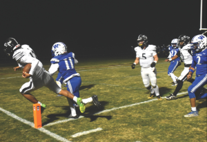 Sussex Tech quarterback Knox Sheets steps over the goal line during Friday’s game. He was ruled to have stepped out of bounds before entering the end zone