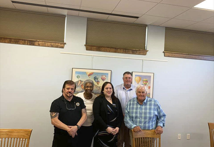 Shown (l to r) during Monday’s Bridgeville Commission meeting are: front row- Commissioner Bruce Smith, newly appointed Town Manager Bethany DeBussy, and Commissioner Thomas Moran; back row- Commissioner Marlene Saunders and President Tom Carey.
