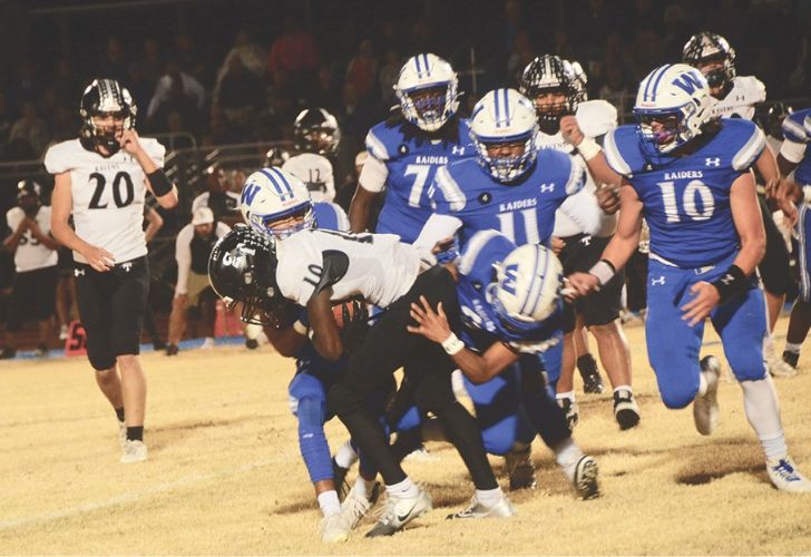The Blue Raiders’ Marquel Clark recovered Sussex Tech’s onsides kick. Hayes had a 43-yard run out of the wildcat to the Sussex Tech 10. Hayes scored on a five-yard touchdown run and Woodall’s PAT gave Woodbridge a 29-20 advantage with 45.3 seconds left in the game and the Raiders held on for the win.